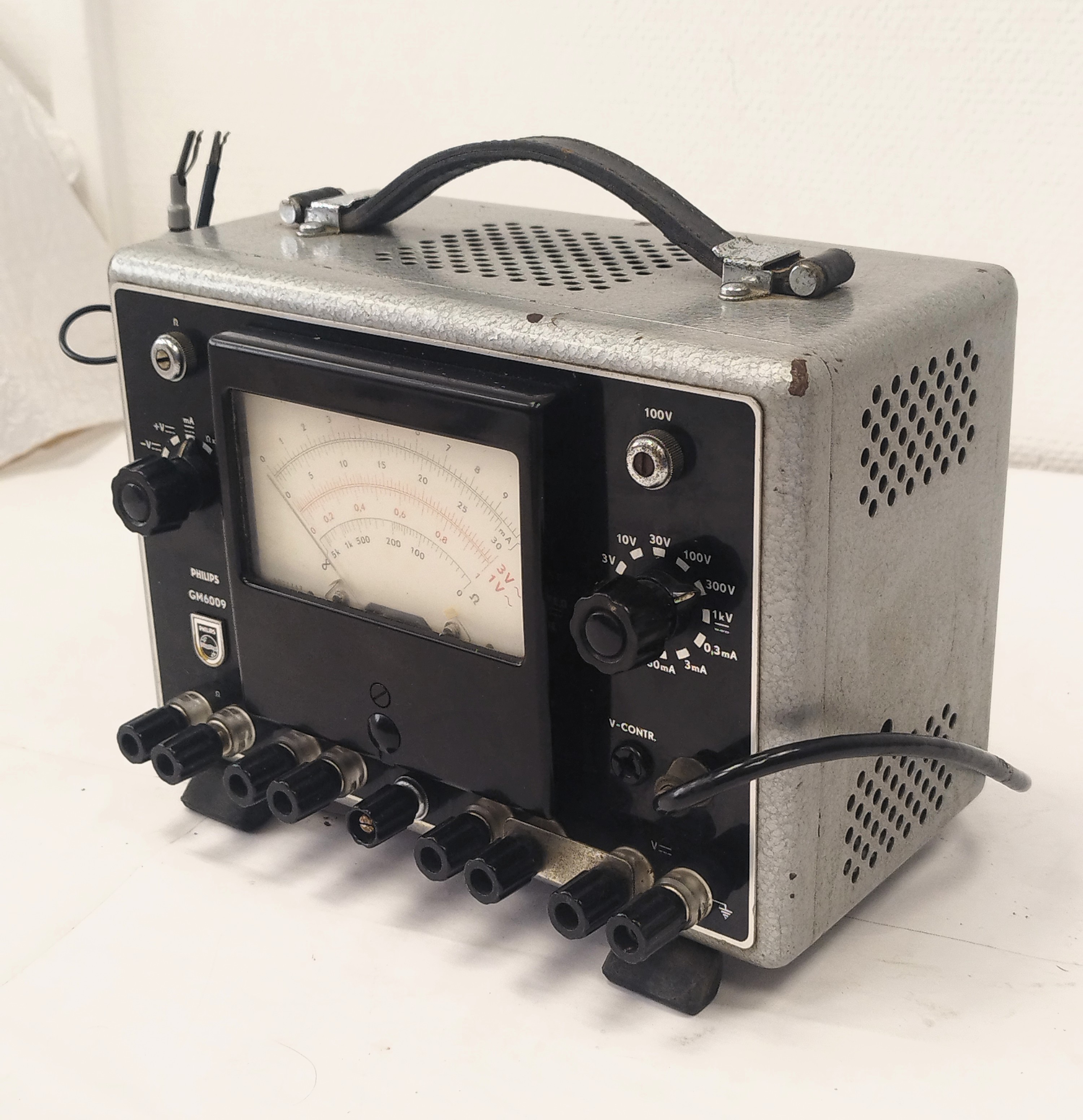 El voltímetro de tubo (VTVM) universal Philips GM6009 se utilizaba para medir voltajes de corrien...