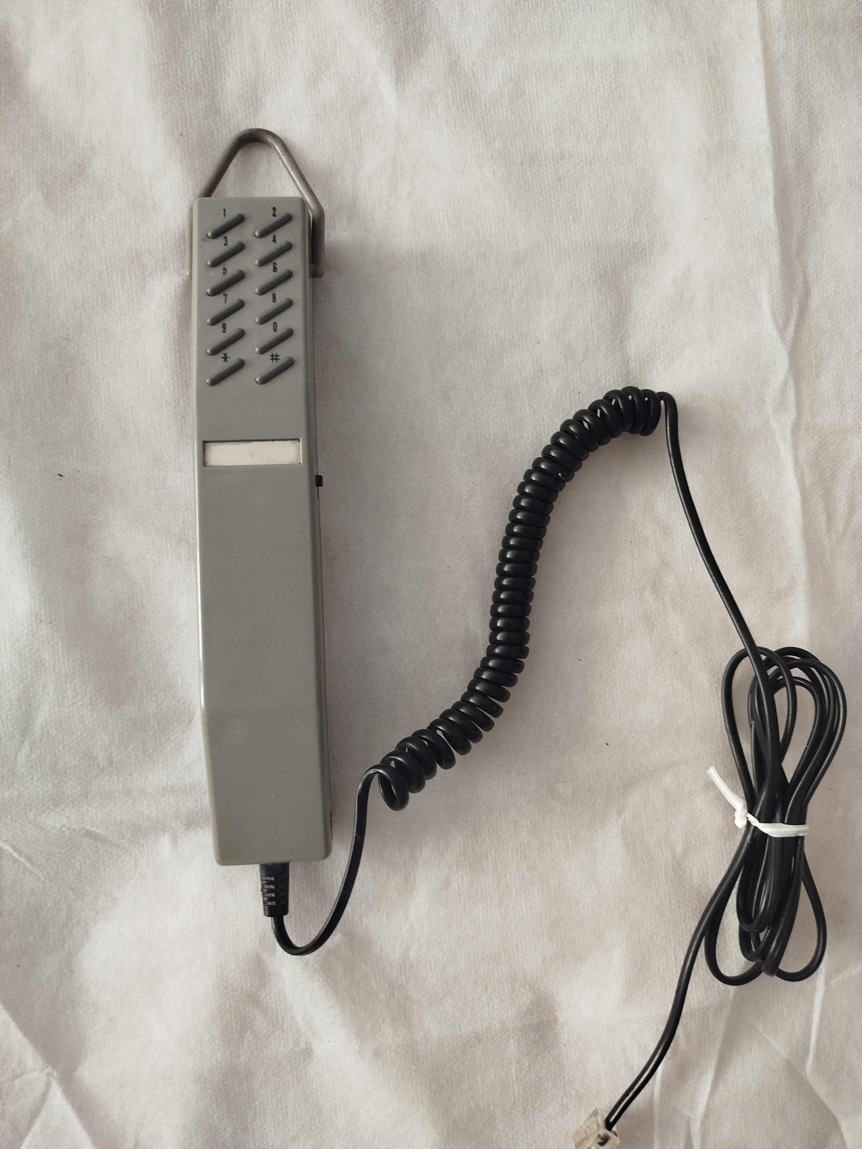Teléfono fijo analógico de uso doméstico o de oficina, diseñado para instalación en pared. Fabricado en...