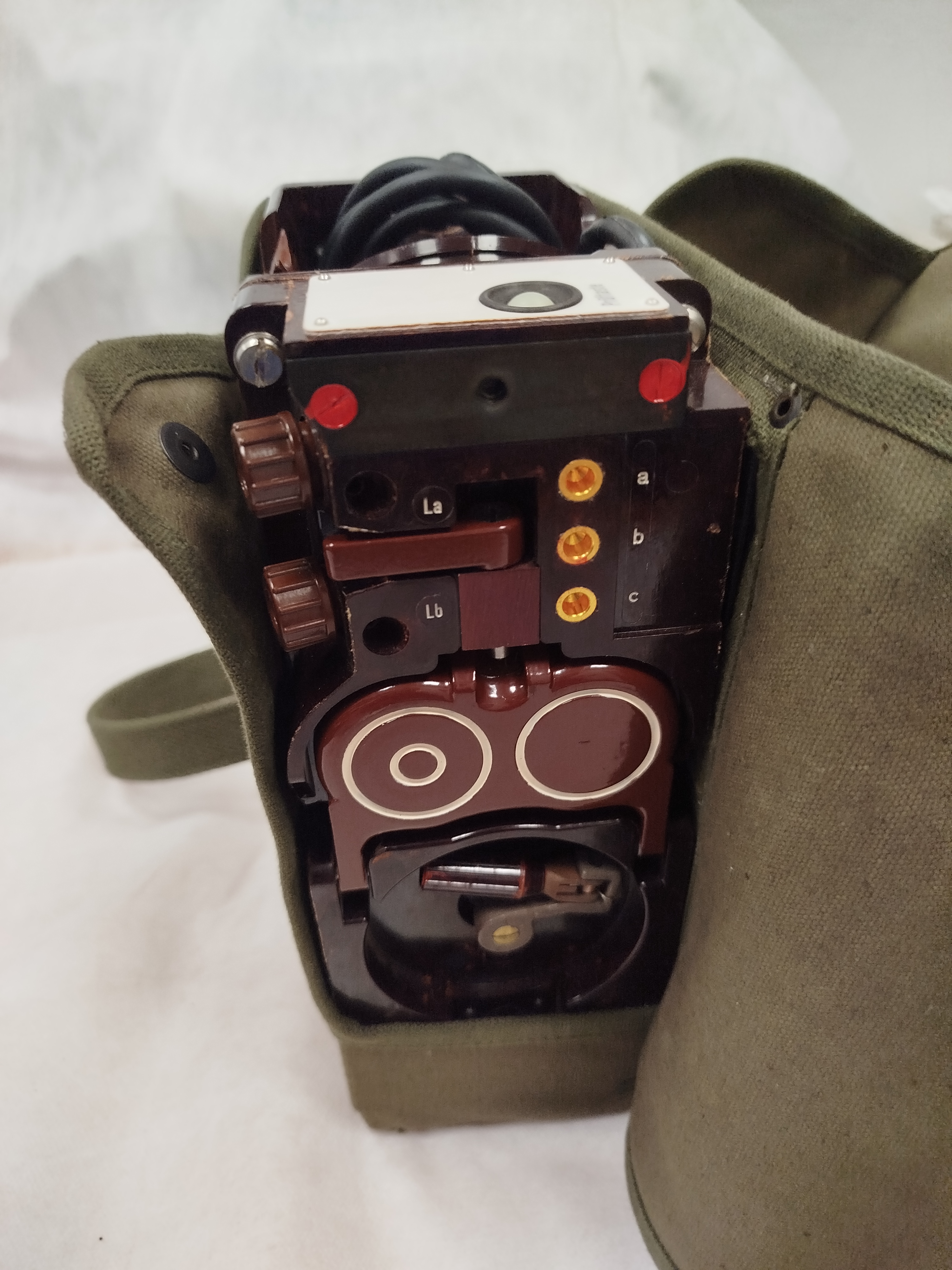 Teléfono de campaña analógico, utilizado para comunicaciones tácticas de corto y medio alcance mediante ...