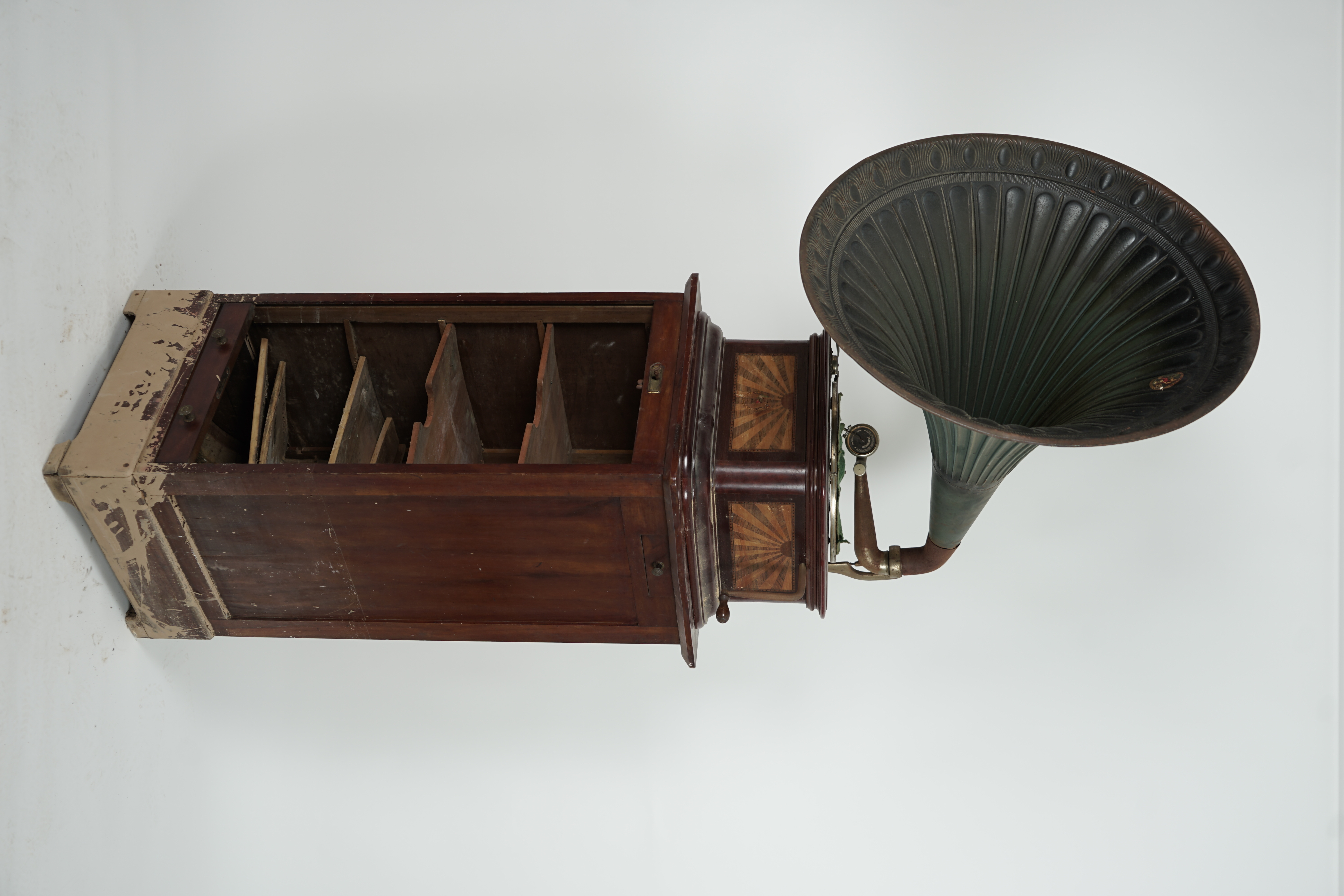 Gramófono de grandes dimensiones para salón. Fabricado y ensamblado por la empresa F B situada en el núme...