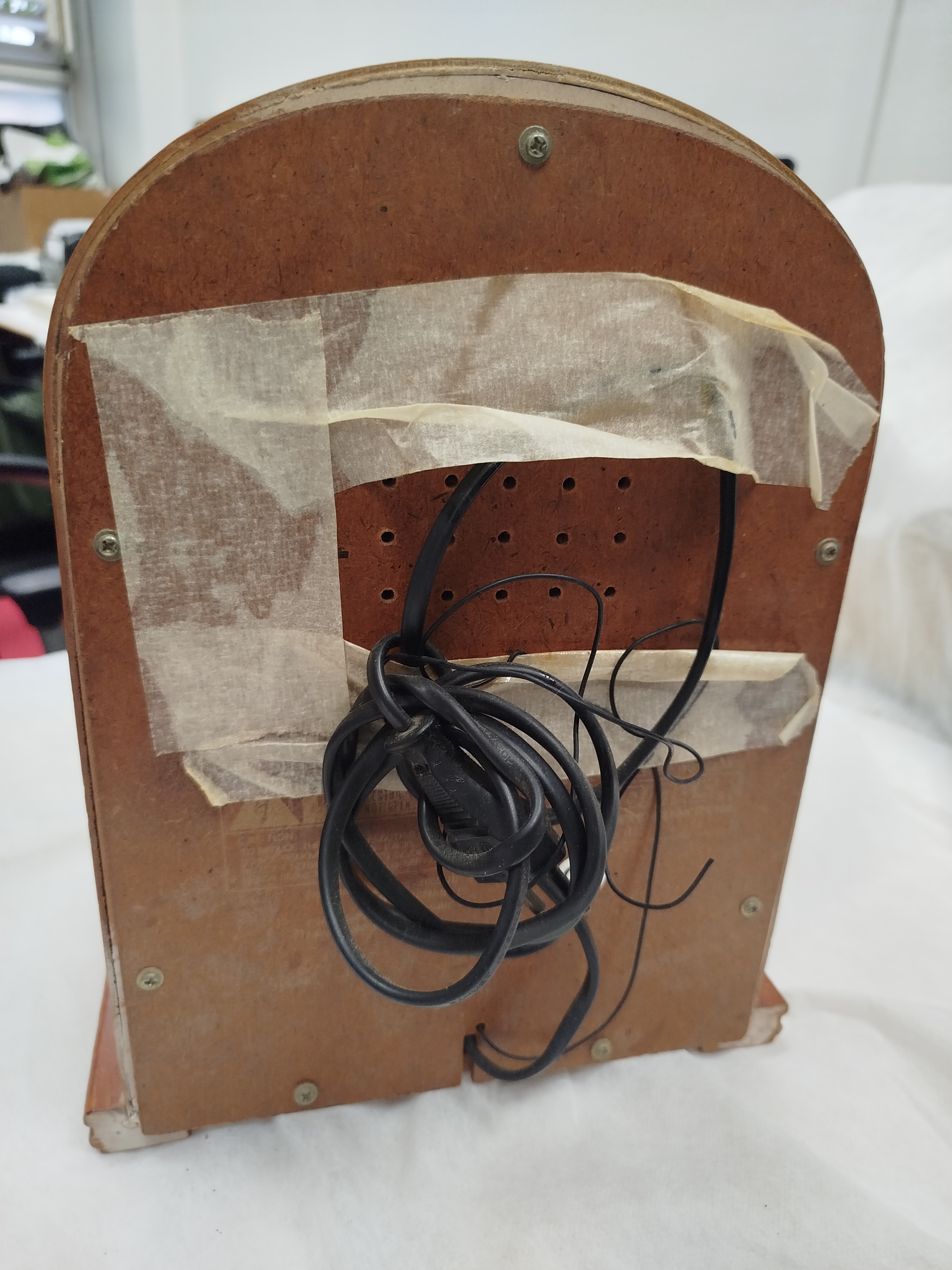 Radio superheterodina AM/FM con reproductor de casete (o 8-track en algunas variantes), caja de madera con estética retro tombstone, dial iluminado, altavoz de imán permanente. Funciona con corriente alterna (220 V o 110 V, según versión). Se aprecian componentes modernos: tecnología de transistores, control automático de frecuencia (AFC), potenciómetros plásticos, casetera autostop. No se trata de una pieza de época, sino de una réplica vintage: los primeros modelos emergieron en 1988-90, aprovechando el mercado retro, inspirandose en diseños de los años 30 pero fabricados con esquemas técnicos modernos (AM / FM, transistores, caset)