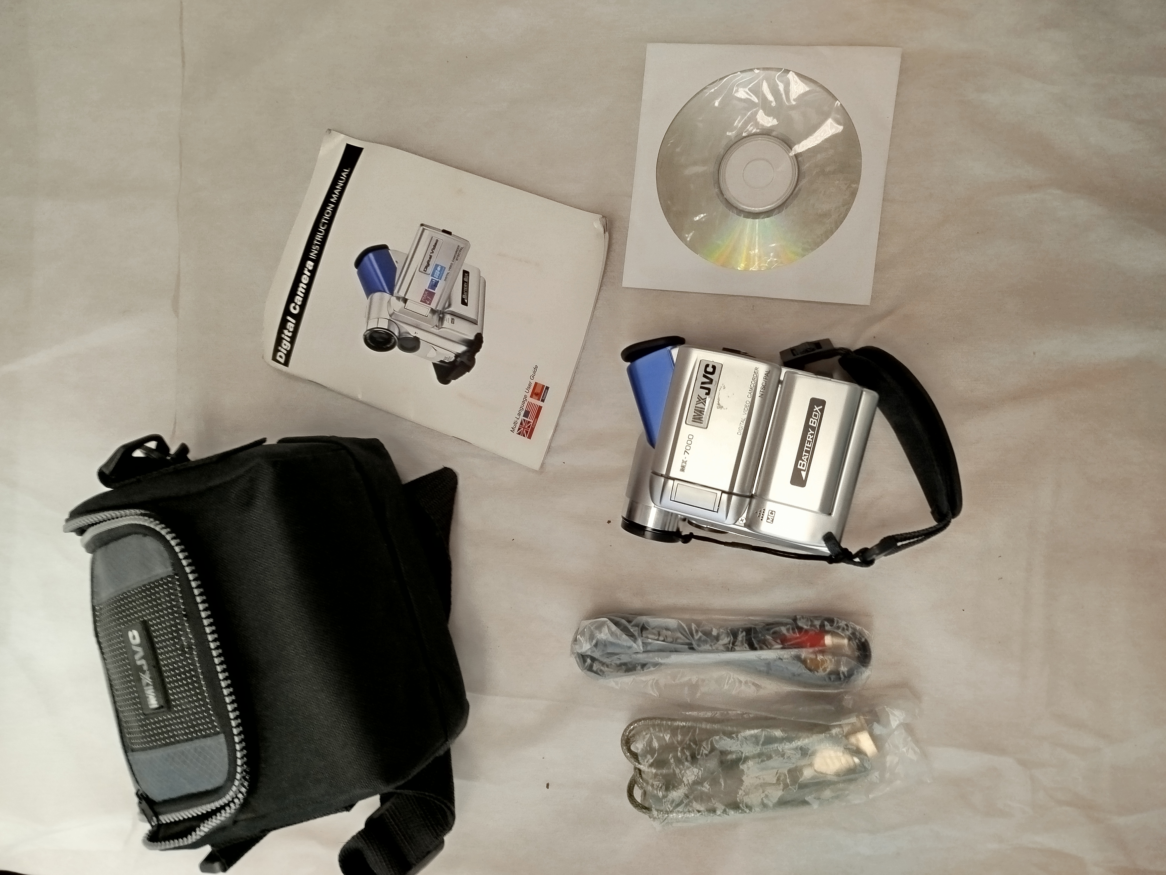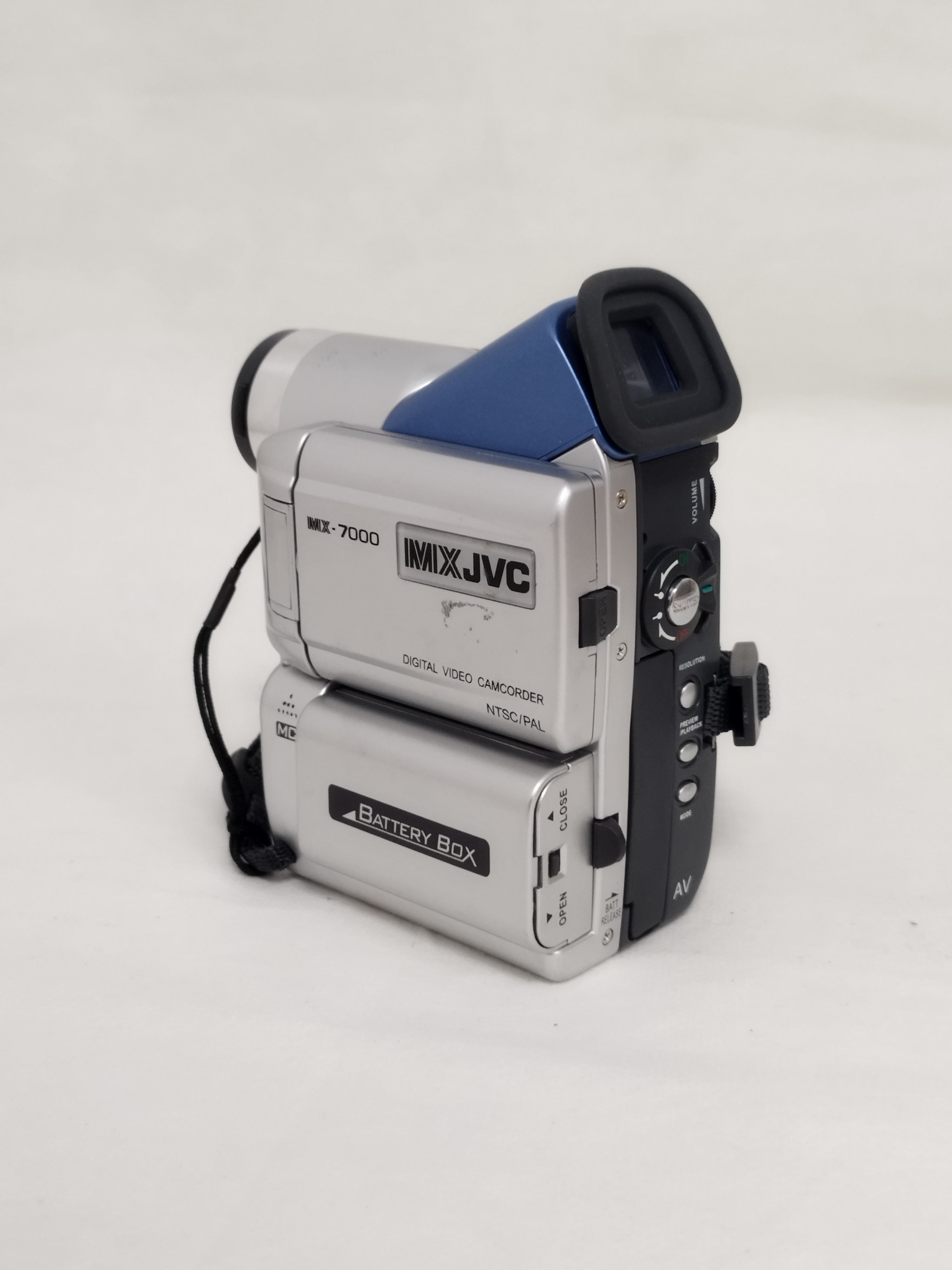 La videocámara JVC MX-7000 es una videocámara Mini DV de definición estándar, notable por sus capacidades de imagen de alta resolución para su época. Esta cámara es un modelo vintage y no es compatible con formatos modernos como Full HD o 4K. Se caracteriza por el uso de cintas Mini DV para el vídeo y tarjetas SD para las fotografías.
